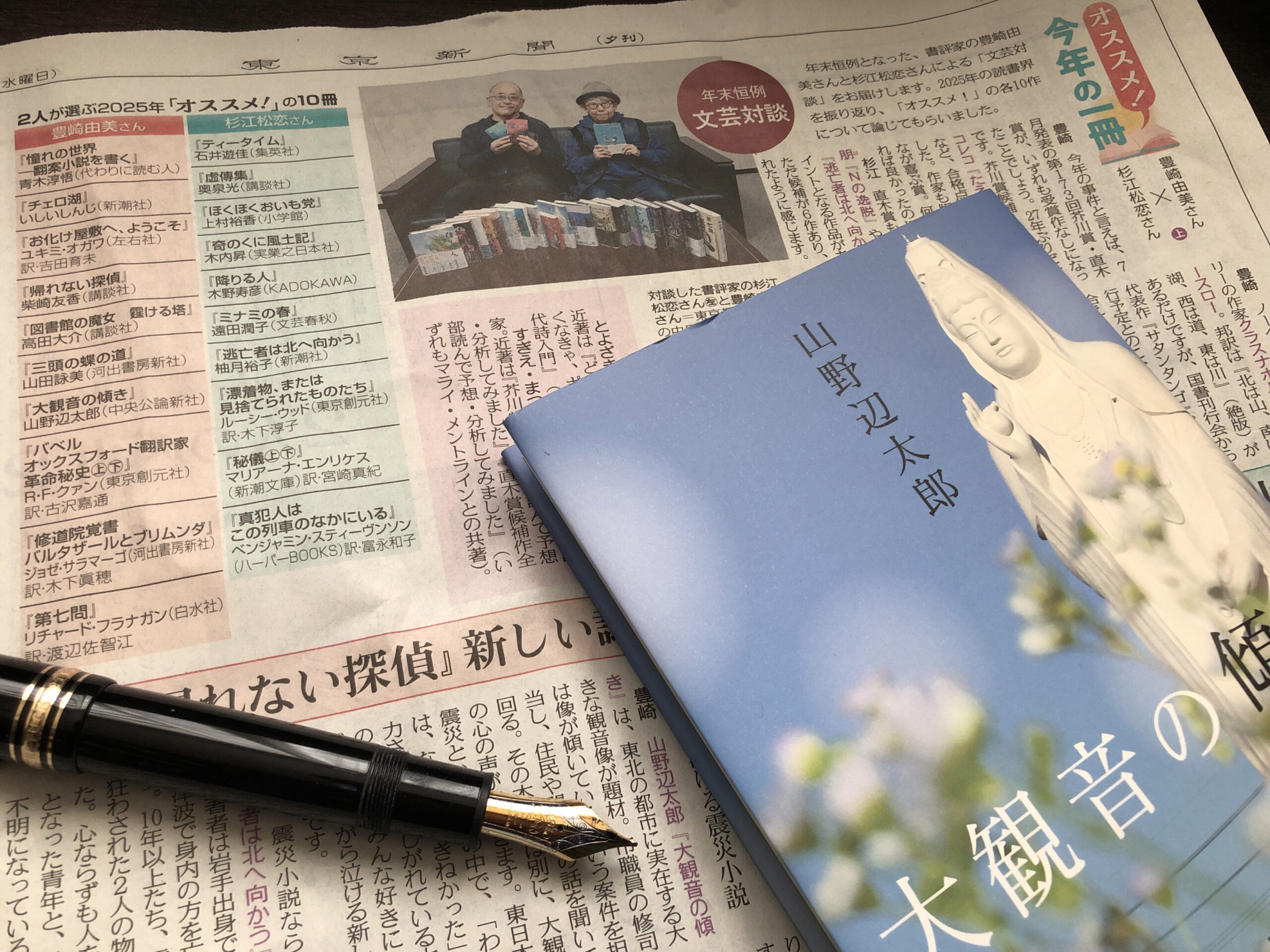 読書面の小説「大観音の傾き」が9月いっぱいで終了し、10月2日の文化面には著者の山野辺太郎さんによる寄稿が掲載された。物語の中でも重要な存在である仙台大観音を「あのおかた」と呼んでしまうあたりに、山野辺さんの人柄が浮かび上がる。